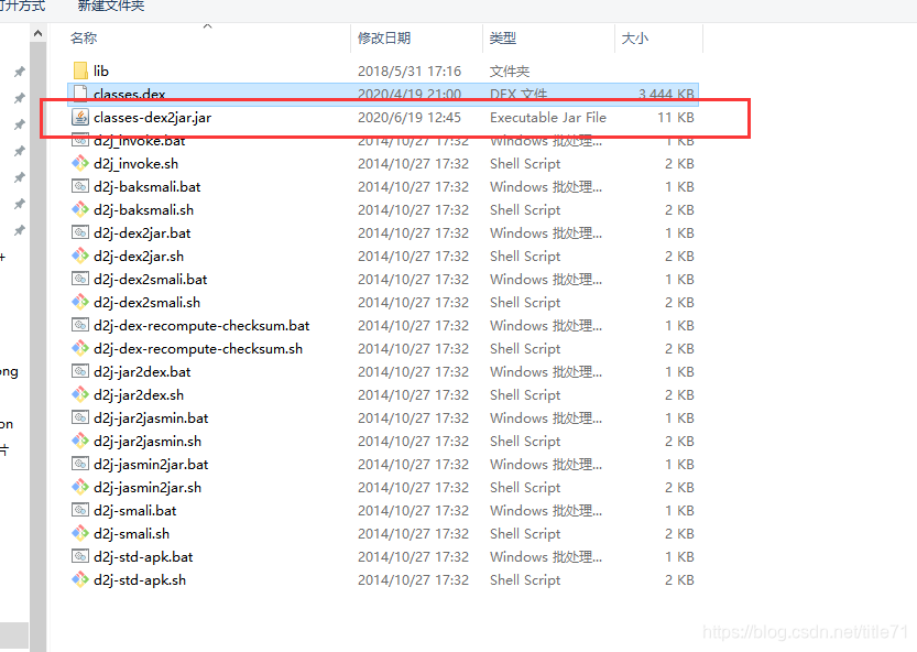 有些高版本只有看情况,可能没有这个完全一样的文件,看准dex2jar.bat就完事了