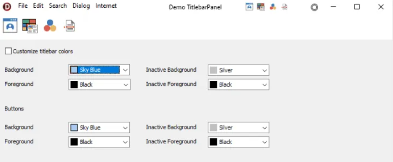新版本增加了在标题栏区域绘制样式控件的支持,并提供了新的 TTitleBar.StyleColors 属性,以便自动使用 VCL 样式颜色作为标题栏背景和按钮的颜色。该支持包括在 TTitleBarPanel 上使用以下控件(无样式和有样式):