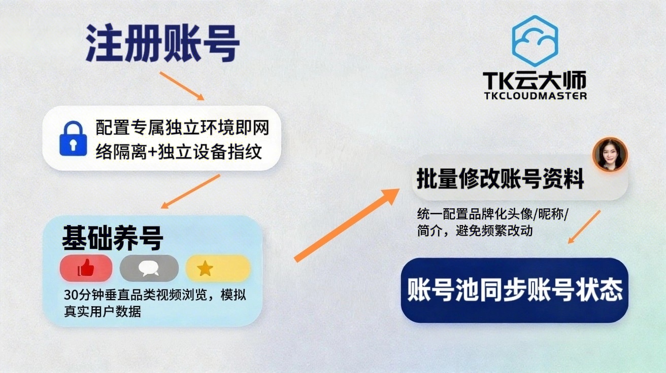 2025年TikTok依旧是跨境流量蓝海,但“账号养熟即封”的风控难题,让不少技术开发者和运营新手望而却步。此前我们聊过TK云大师在全场景运营中的适配性,而要真正顺利入局,需打通“定位-配置-运营-风控”全链条,其中工具对行为检测的应对能力,成为破局关键。
