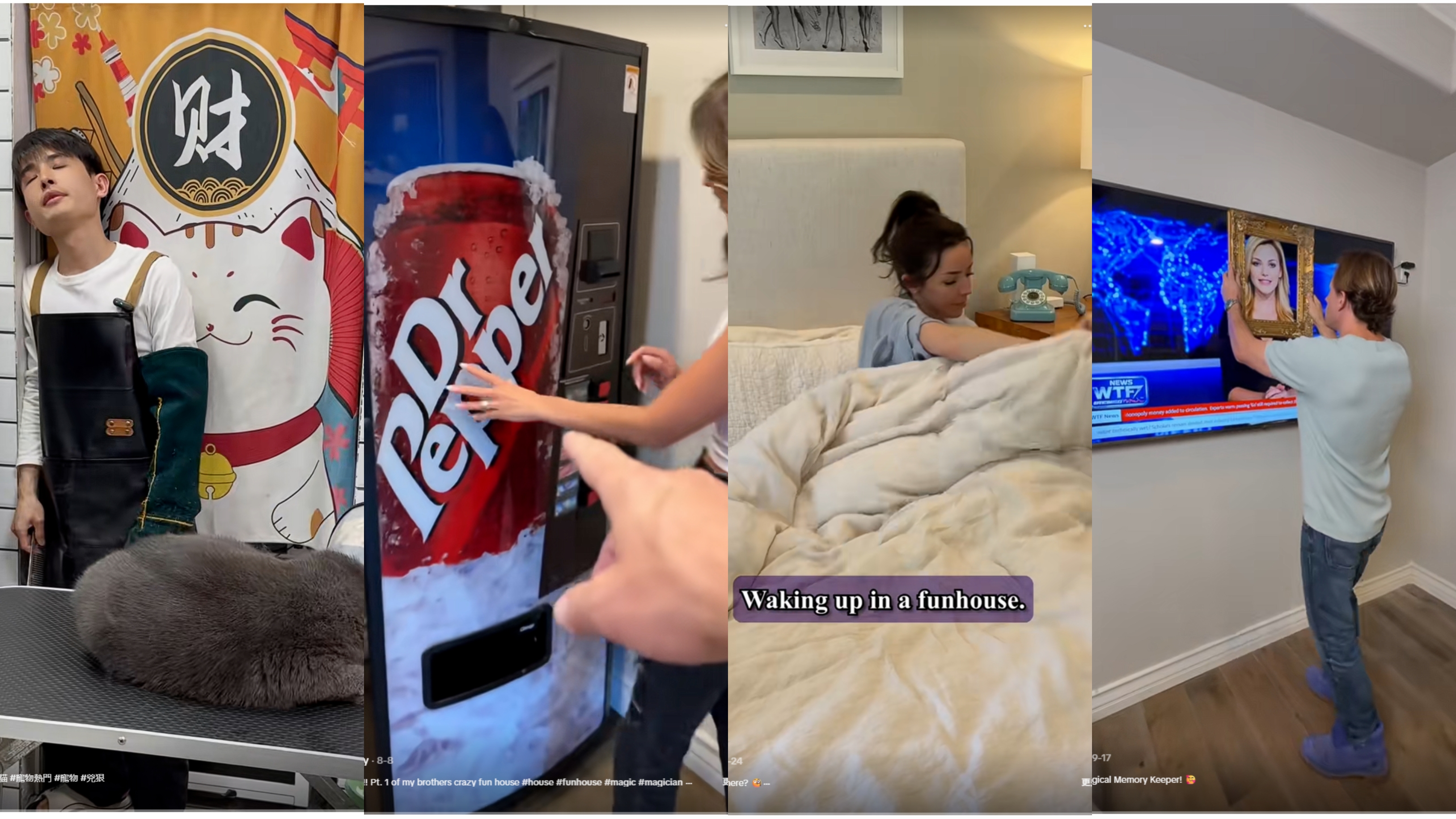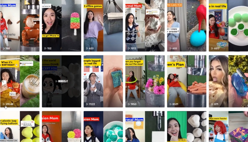 不用自己拍素材,用“双拼混剪”的方式就很省心。左屏选TikTok上热门博主的爆款视频,筛选标准很简单,平均播放50万以上、有过1000万以上爆款的博主优先,而且最好是在多个平台都有知名度的,这样素材自带流量属性。