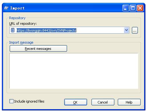注意这里的URL of repository :file:///e:/SVNProjects或者https://liyongqin:8443/svn/SVNProjects或者https://127.0.0.1:8443/svn/SVNProjects这个Url在SVN Server创建版本库的时候可以看到,见上图。这里liyongqin是机器名或者IP地址。