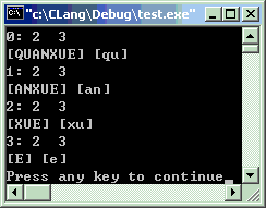 #include<stdio.h>intmain(void) {inti; //这是字符数组赋初值的方法,维数:4X2charcArr[][2] = {{'Q','U'}, {'A','N'}, {'X','U'}, {'E','\0'}}; //这是字符串数组赋初值的方法,维数:4X3charsArr[][3] = {"qu","an","xu","e"}; //用sizeof()求长度for(i=0; i<4; i++) { printf("%d: %d %d\n", i,sizeof(cArr[i]),sizeof(sArr[i])); printf("[%s] [%s]\n", cArr[i], sArr[i]); }return0; }