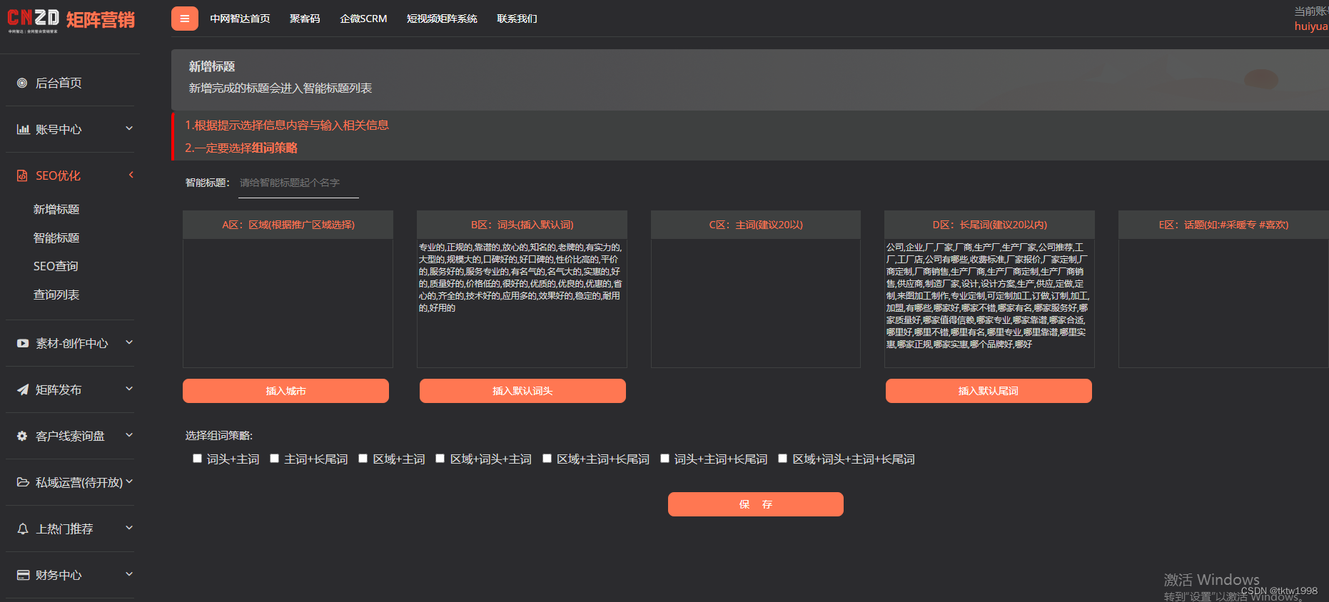中网智达矩阵营销系统一站式解决,多账号管理,视频剪辑,标题智能生成,多账号发布,意向客户采集,自动回复,多账号聚合回复,优化排名。
