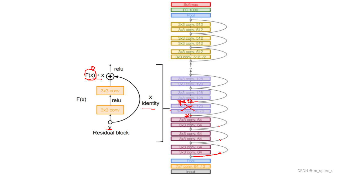 通过将输入再加到输出上避免了由于层数过多导致的梯度消失现象,同时可以去掉相同的主体部分,从而突出微小的变化,用来训练非常深的网络。