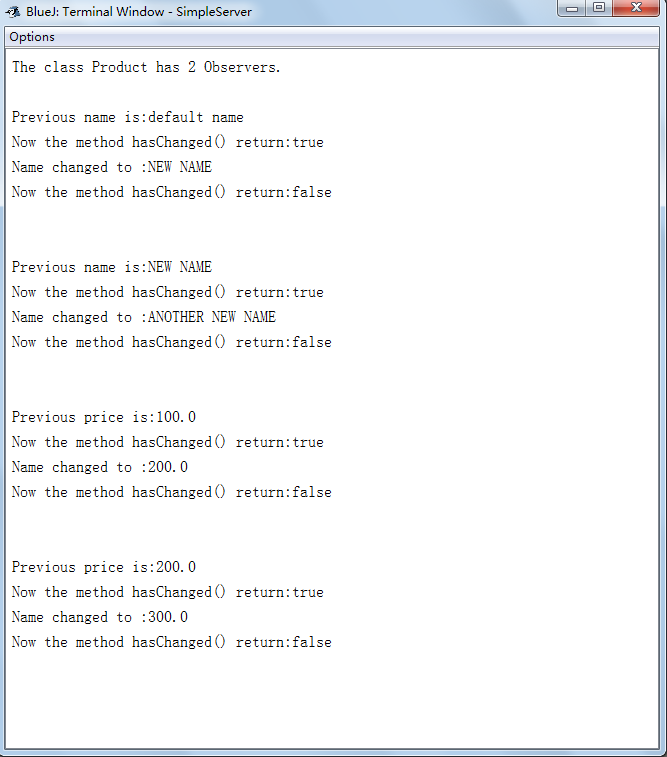 System.out.println("Now the method hasChanged() return:"+hasChanged()+"\n\n");