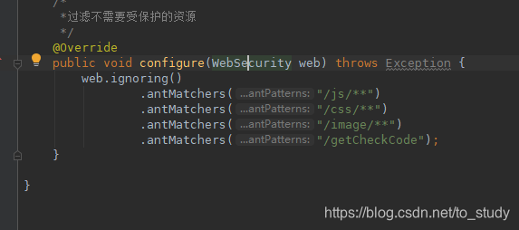 - configure(WebSecurity web):配置security作用的范围,保护那些接口等等