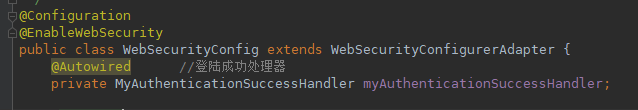 再在配置类配置启用该处理器//登陆账户密码验证成功处理器,返回一个json对象,用于异步处理 @Component public class MyAuthenticationSuccessHandler implements AuthenticationSuccessHandler { private ObjectMapper objectMapper = new ObjectMapper(); /** * @param httpServletRequest * @param httpServletResponse * @param authentication 认证成功封装的用户信息 * @throws IOException */ @Override public void onAuthenticationSuccess(HttpServletRequest httpServletRequest, HttpServletResponse httpServletResponse, Authentication authentication) throws IOException { //httpServletRequest.getSession().removeAttribute("checkCode"); // User user = (User) authentication.getPrincipal(); //更新最后一次登录时间 String json = objectMapper.writeValueAsString(authentication.getPrincipal()); // System.out.println(json); httpServletResponse.setContentType("application/json;charset=utf-8"); httpServletResponse.getWriter().write(json); } }