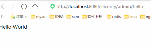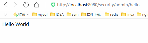 @RestController @RequestMapping("/admin") public class SecurityController { @RequestMapping("/hello") public String hello() { return "Hello World"; } } - application.yml配置文件