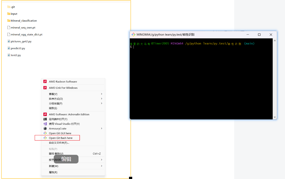 mkdir mineral_classification # 创建名为mineral_classification的文件夹 cd mineral_classification # 进入该文件夹 git init # 初始化一个新的Git仓库(生成隐藏的.git文件夹,用于跟踪文件变更) touch README.md # 创建一个空的README.md文件(用于项目说明) git add README.md # 将README.md添加到Git暂存区(准备提交) (如果是提交所有项目就是 git add . #把当前目录下的所有文件都添加到暂存区准备提交) git commit -m "first commit" # 将暂存区的文件提交到本地Git仓库 -m参数用于添加提交说明("first commit"是本次提交的描述) git remote add origin https://gitee.com/rrcat/mineral_classification.git# 添加远程仓库地址,命名为origin(origin是远程仓库的默认别名) git push -u origin "master"# 将本地master分支的内容推送到远程仓库的master分支(大家看自己的分支名字,我的是main所以就把master改成main)