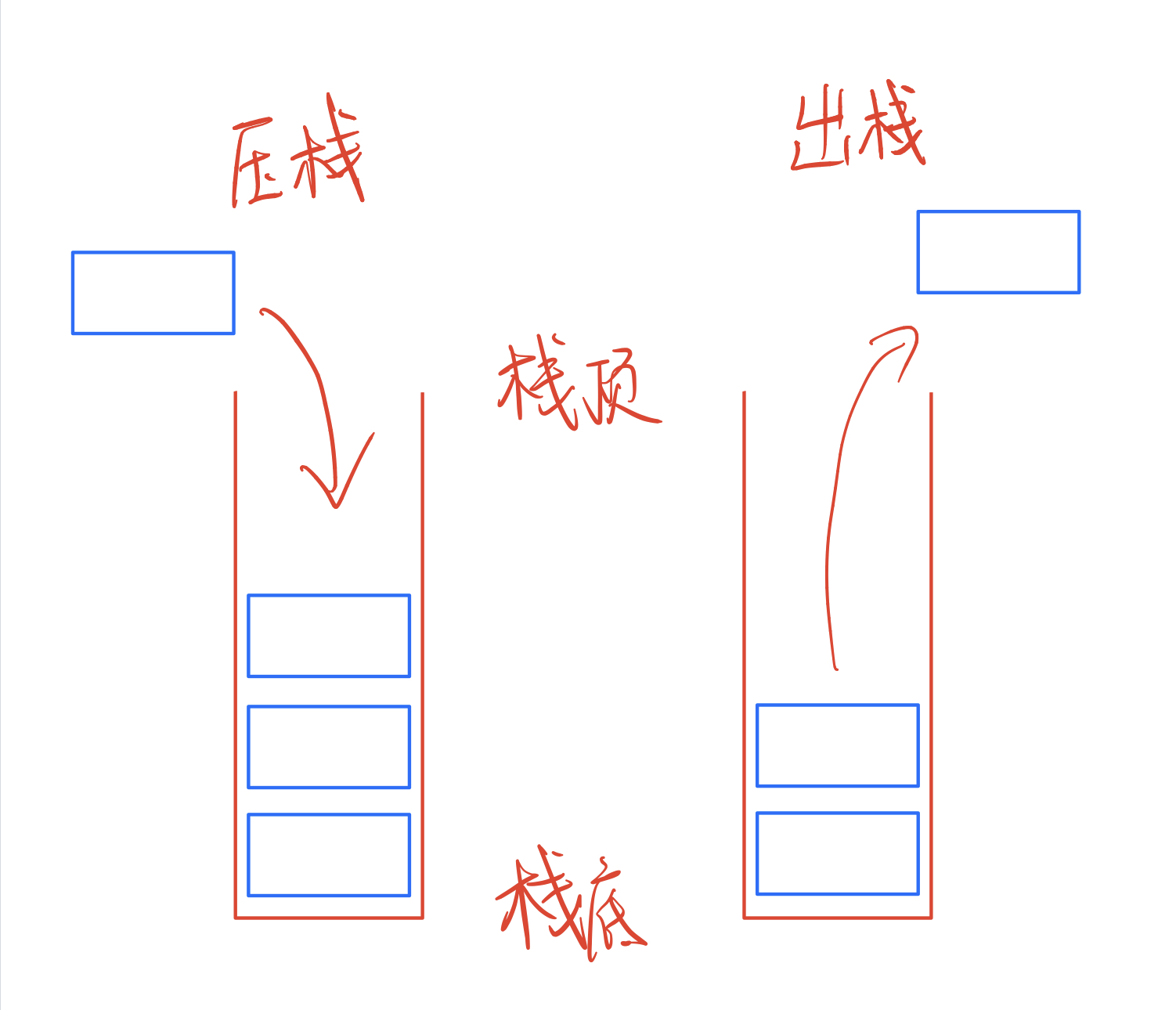 栈中的数据遵循先进后出(Last in First Out)的原则。我们常见的出/入数据的操作,在栈中常成为出栈/压栈。