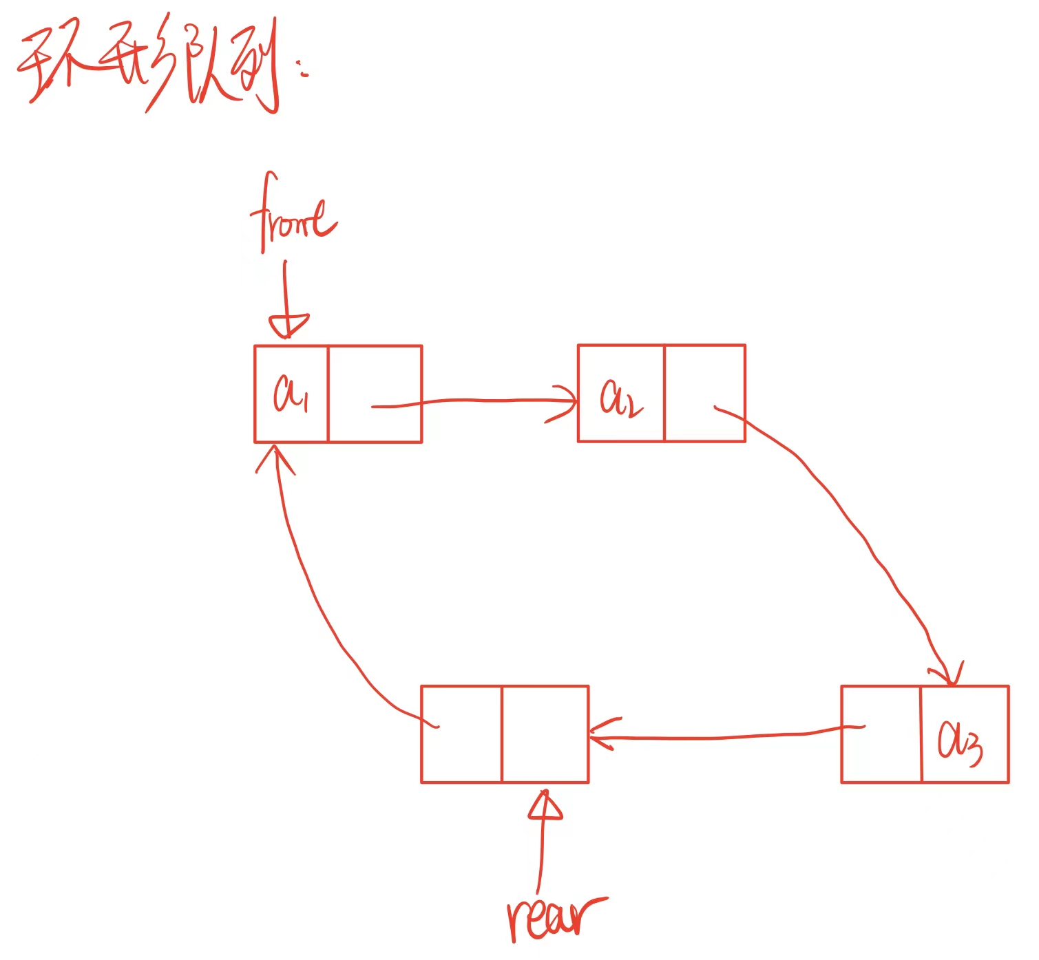 在实际的使用中,一般会为队列多开一个数据空间来表示环形队列满了的状态,若front和rear同时相等,会有两种情况,第一种是队列为空两数相等;另一种是队列已满两数相等,因此为避免冲突,多开出一个空间,此时rear+1==front才能表示满了的状态。