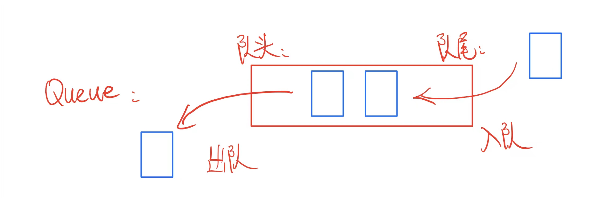 队列与栈不同的是,它遵循先入先出(First in First Out)的原则,即在队尾插入数据,称入队;在对头删除数据,称出队。
