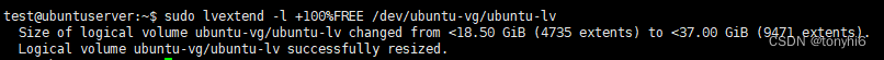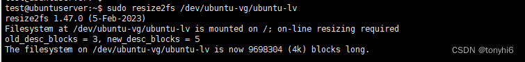 sudo resize2fs /dev/ubuntu-vg/ubuntu-lv