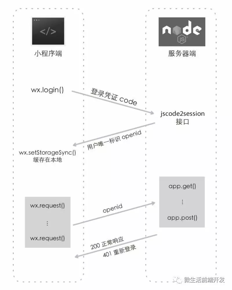 小程序通过api获得code,传递给服务器换取并缓存openid