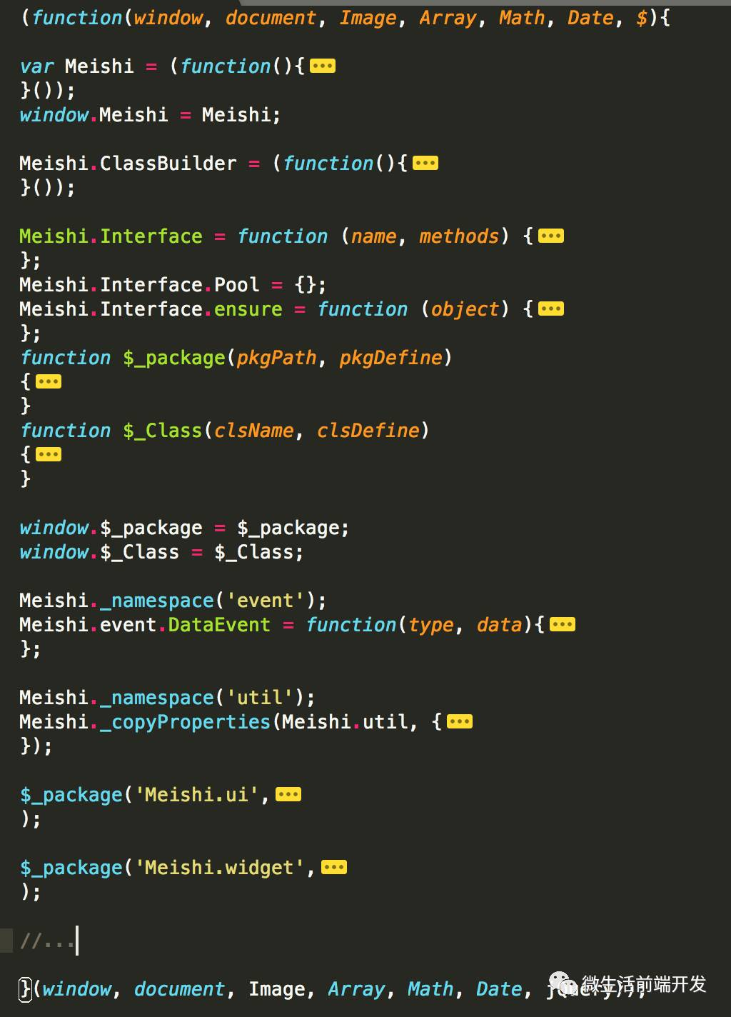 window.Meishi = Meishi;可以看到此处用了典型的 IIFE 方式定义了一个根模块。
