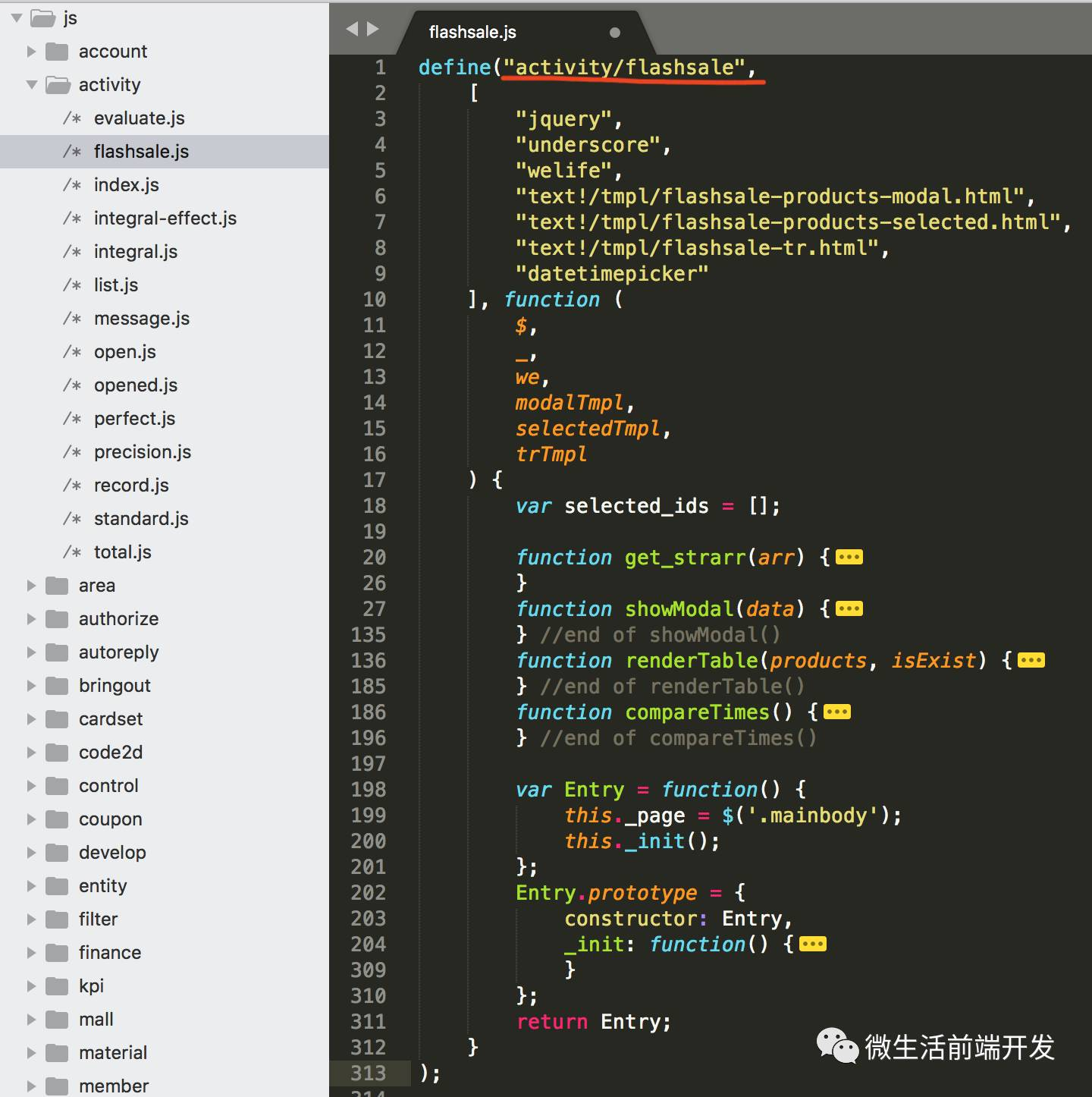 让我们把眼光投向微生活各个时期项目中的 JS 代码,看一看时代在其中投下的烙印,也许只是管中窥豹、走马观花,但通过其组织形式的异同,或可一瞥 JS 模块化层面的历史脉络。
