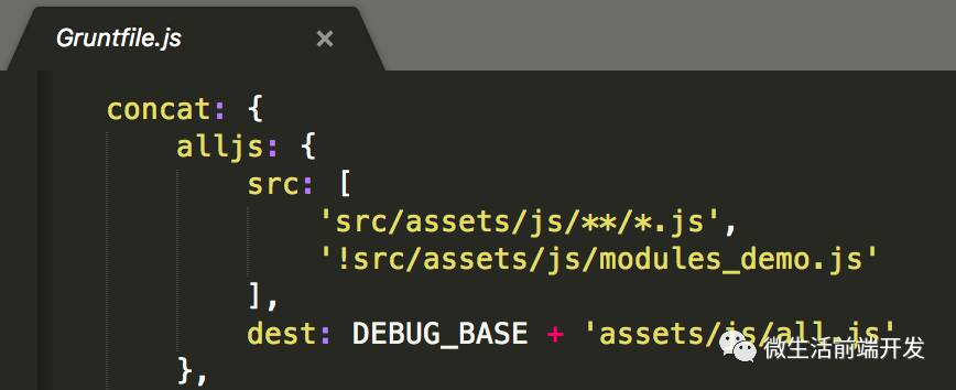 };其次,在 grunt 的配置中,由 babel 处理 js 文件,注意使用了transform-es2015-modules-umd插件,将 ESM 转化为 UMD:
