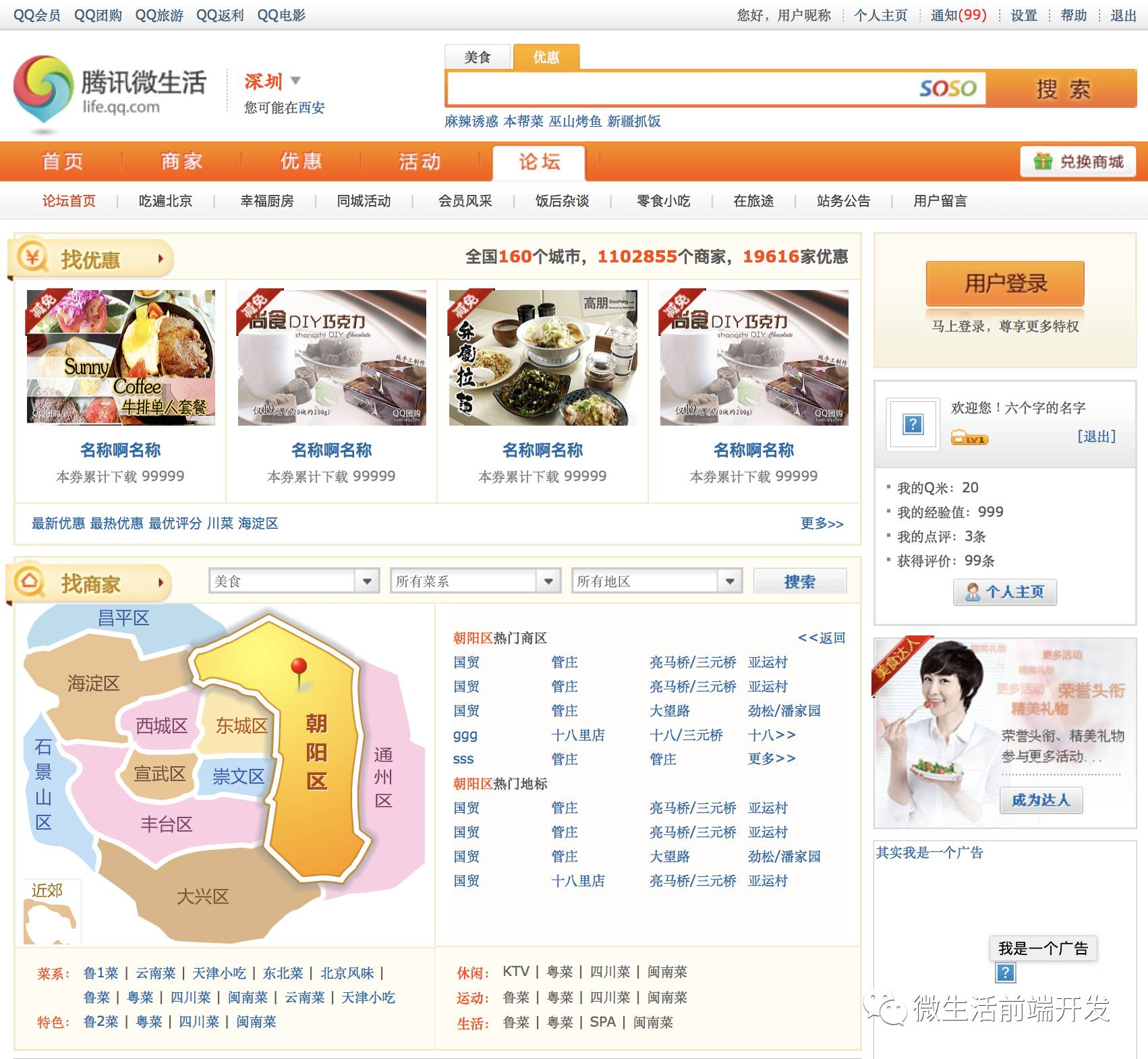 代表项目:腾讯微生活门户网站(QQ美食)、微生活会员卡(x1)