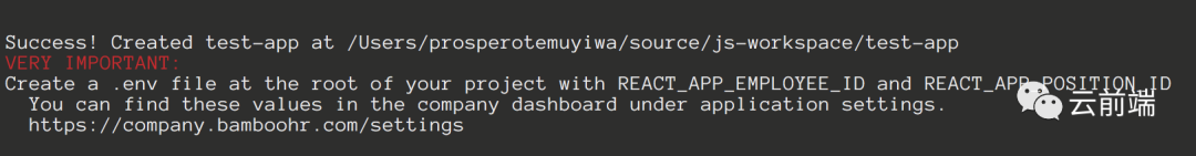 REACT_APP_POSITION_ID='ENGR'一旦用这个版本的 create-react-app 工具安装完了 react-scripts,用户就必须将 .env.example 文件重命名为 .env。你应当将此说明写入 README 文件。