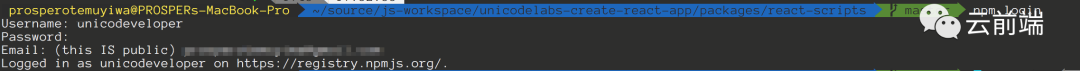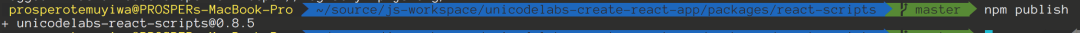 在发布到 npm 之前,我们需要将 react-scripts/package.json 文件中 name 属性的值改为 unicodelabs-react-scripts。