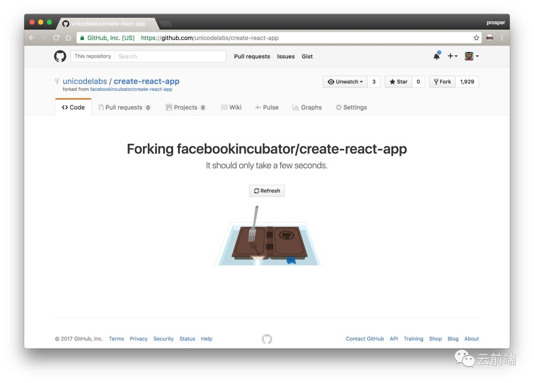 打开 GitHub 仓库并 fork 一个 create-react-app 库。
