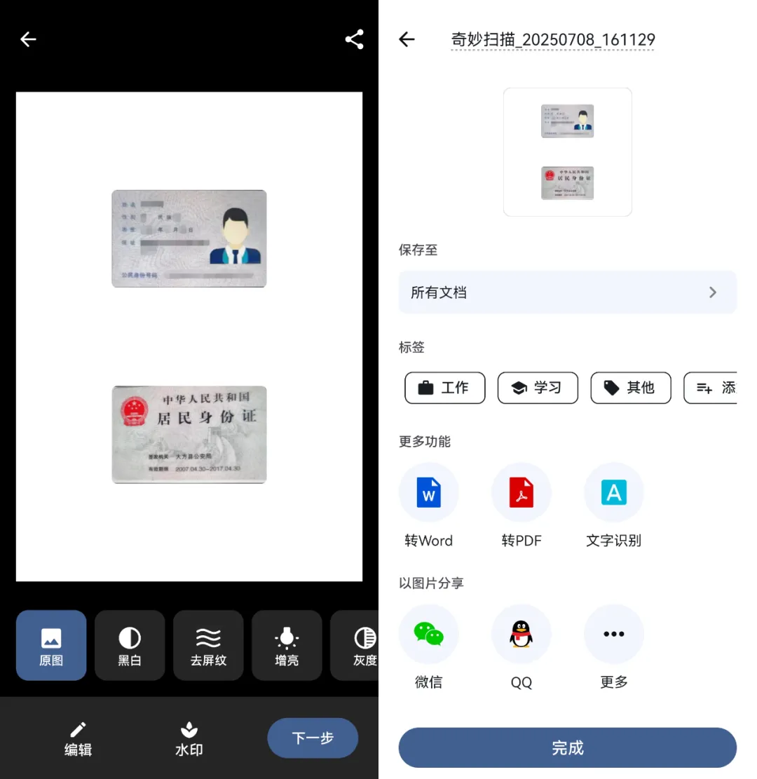 它叫奇妙扫描,不仅完全免费,而且特别干净,没有那些烦人的广告,用的时候也不用注册登录,特别方便。功能也很全,能扫描证件、识别文字,还能导入图片,PDF相关的操作也能搞定。