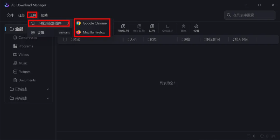 浏览器集成:可以安装浏览器扩展,自动接管浏览器里的下载链接,用起来很顺手。