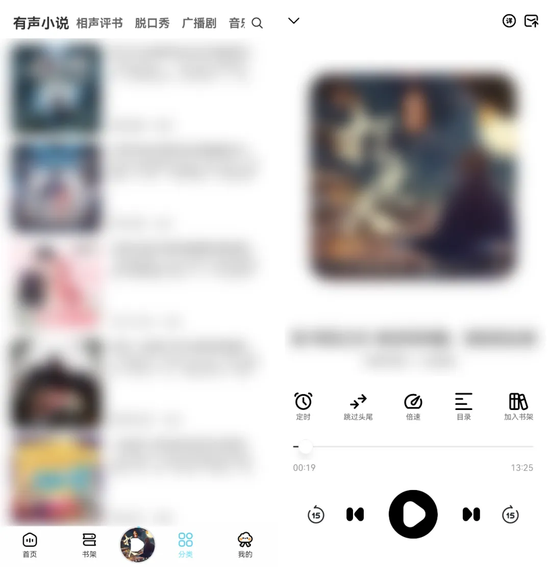 功能设计得也挺贴心得。听长篇小说时,它能自动跳过片头片尾,不用每次都手动快进;晚上睡前听可以设定时关闭,我一般定30分钟,听着听着就睡着了,早上起来手机还在待机页面,不会耗太多电。倍速调节也方便,1.5倍听故事刚好,既能跟上节奏又不耽误干活。