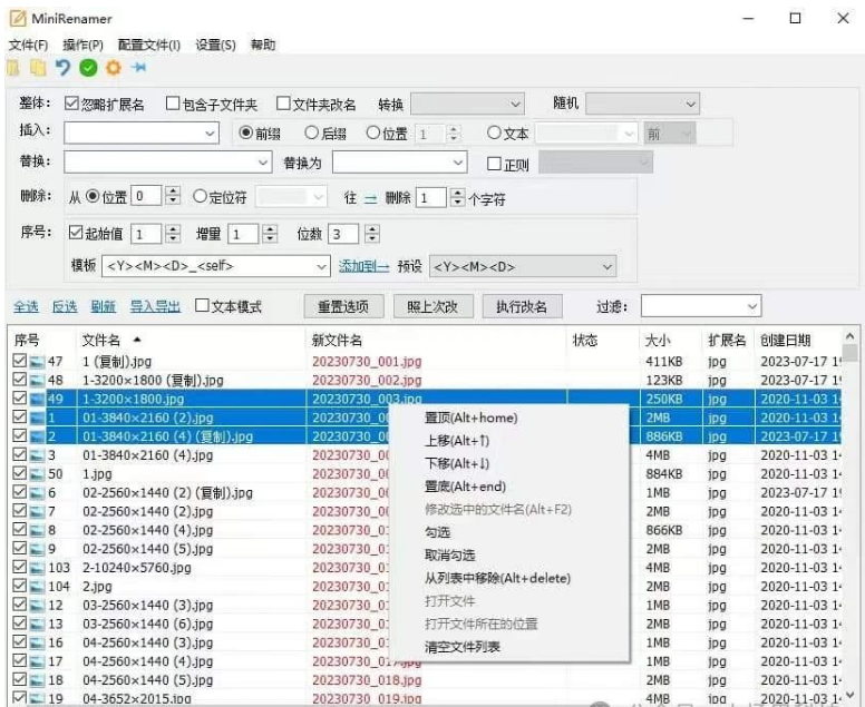功能设计得特贴实际。想按序号排?在“序号”里填个起始值,选好位数,点一下就全改成“001.jpg”“002.jpg”这种整齐的格式;想加日期?用模板里的标签,生成的文件名会带上拍摄当天的日期,比如“20230715_001.jpg”,查起来一目了然。我还试过替换功能,把所有文件名里的“IMG_”换成“旅行_”,批量操作也就几秒钟,比手动改快太多了。
