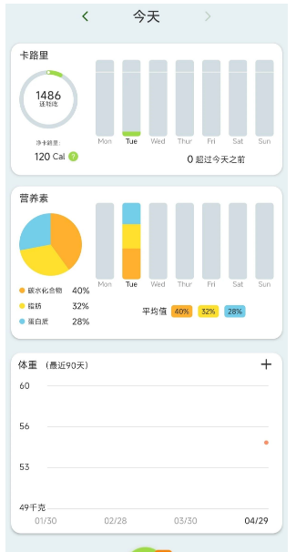 数据记录功能也省心,每天吃了啥、总热量多少,都会自动生成图表。我发现自己周末总比工作日吃得多,后来有意识地周末多走路,倒也没胖。最难得的是它不制造焦虑,首页总弹“别纠结一两口,长期平衡更重要”,这点比那些天天喊“这不能吃”的软件强多了。