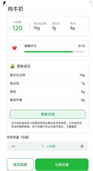 里面的健康评分挺有意思,水煮蛋能得9分,炸鸡排只有4分,我家娃现在吃饭前都要抢着用它“打分”,说要吃“高分菜”。不过它也挺实在,每次都会提醒“数据仅供参考”,上周我拍一碗面条,它说280大卡,我妈说“我放的油多,肯定不止”,倒也不影响我们照样吃。