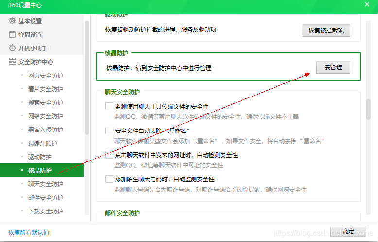 设置路径较深:路径: 360设置中心 -> 安全防护中心->核晶防护->管理->系统防护体系->进程防护(关闭它)