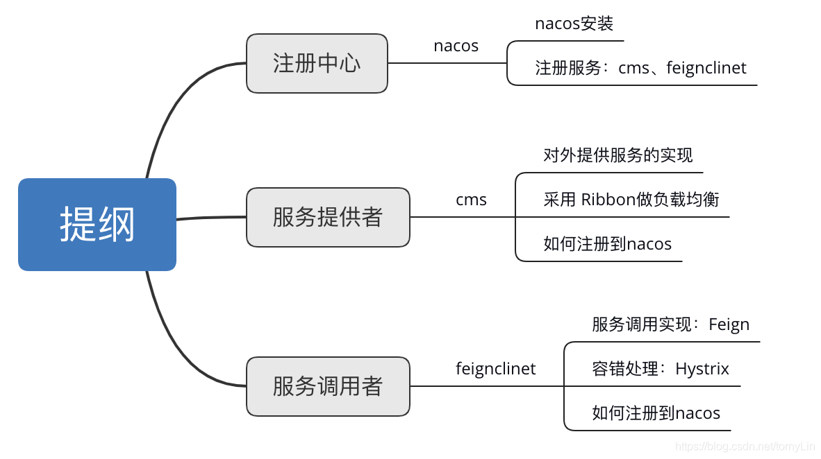 在微服务架构设计时,微服务之间经常要互相调用接口,常用的调用方式有RPC、RestTemplate、HTTP、Feign等。本博客将简单介绍如何基于nacos注册中心,使用Feign进行微服务远程调用。本博客中,您将要了解的内容大致如下: