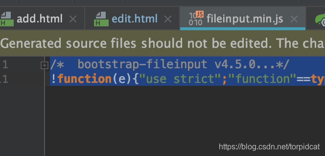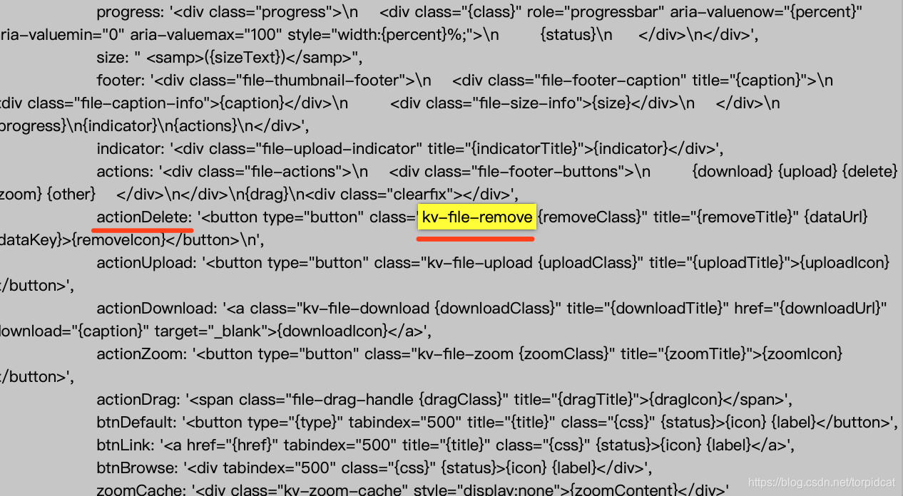 上文js代码段中从$("#fileinputId").fileinput() 找到 layoutTemplates点进去fileinput.min.js源文件