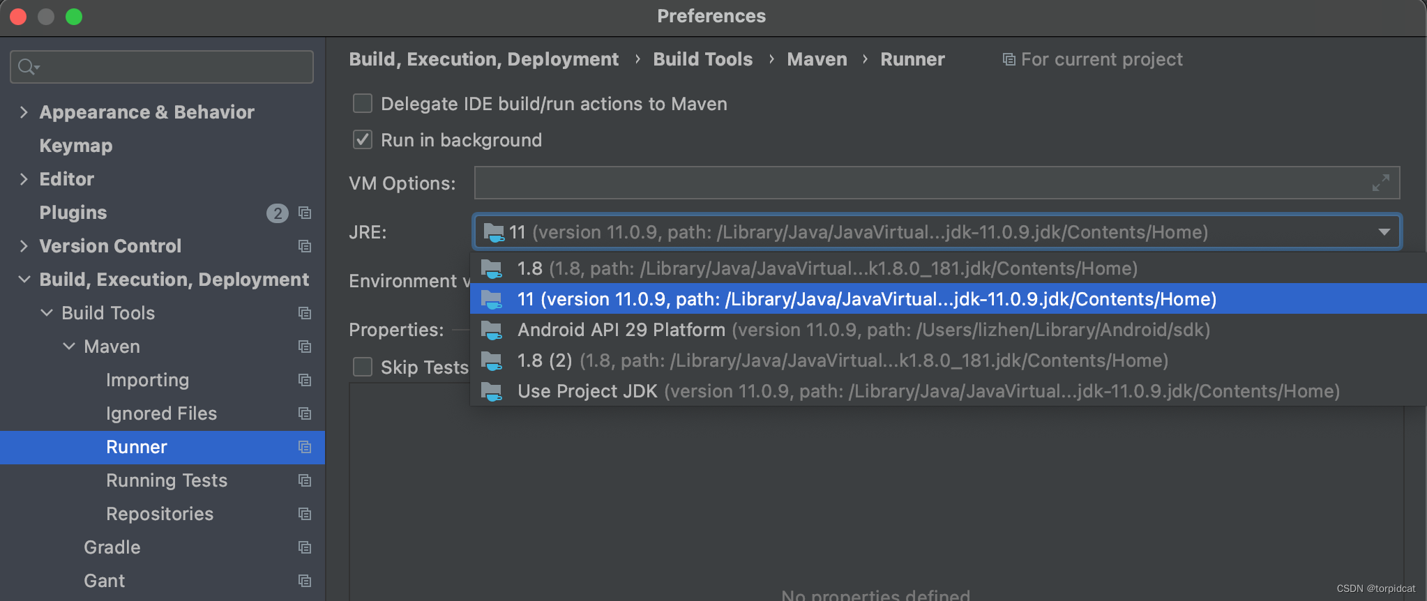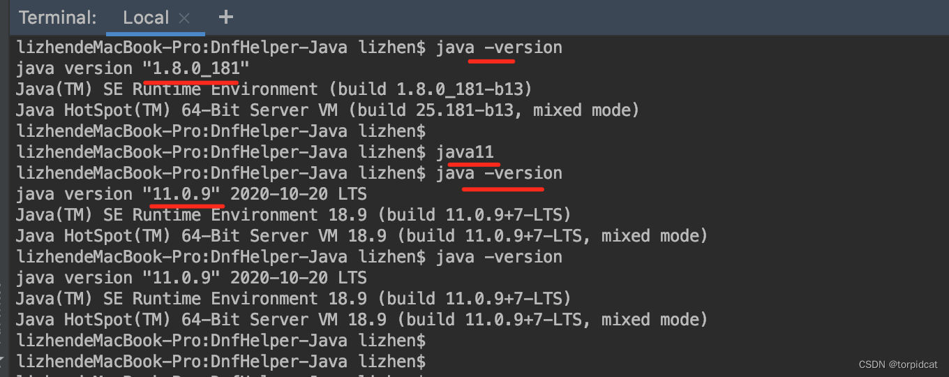四、 如果本地正在运行的java版本与项目使用的不一致,则可能需要本地环境切换JDK版本,以Mac下为例:https://blog.youkuaiyun.com/torpidcat/article/details/130850245