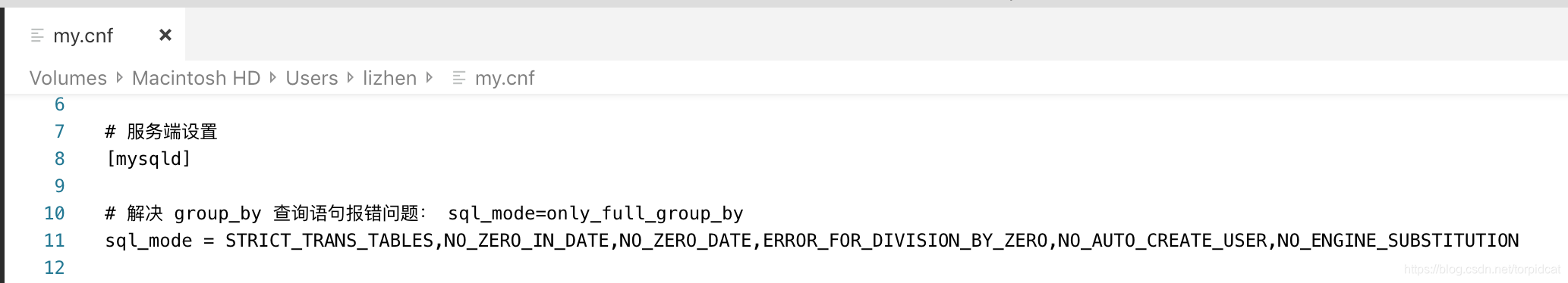 以linux为例,编辑 /etc/my.cnf 文件,搜索sql_mode关键字,有则修改,无则添加(sql_mode配置需要放在[mysqld]节点下):