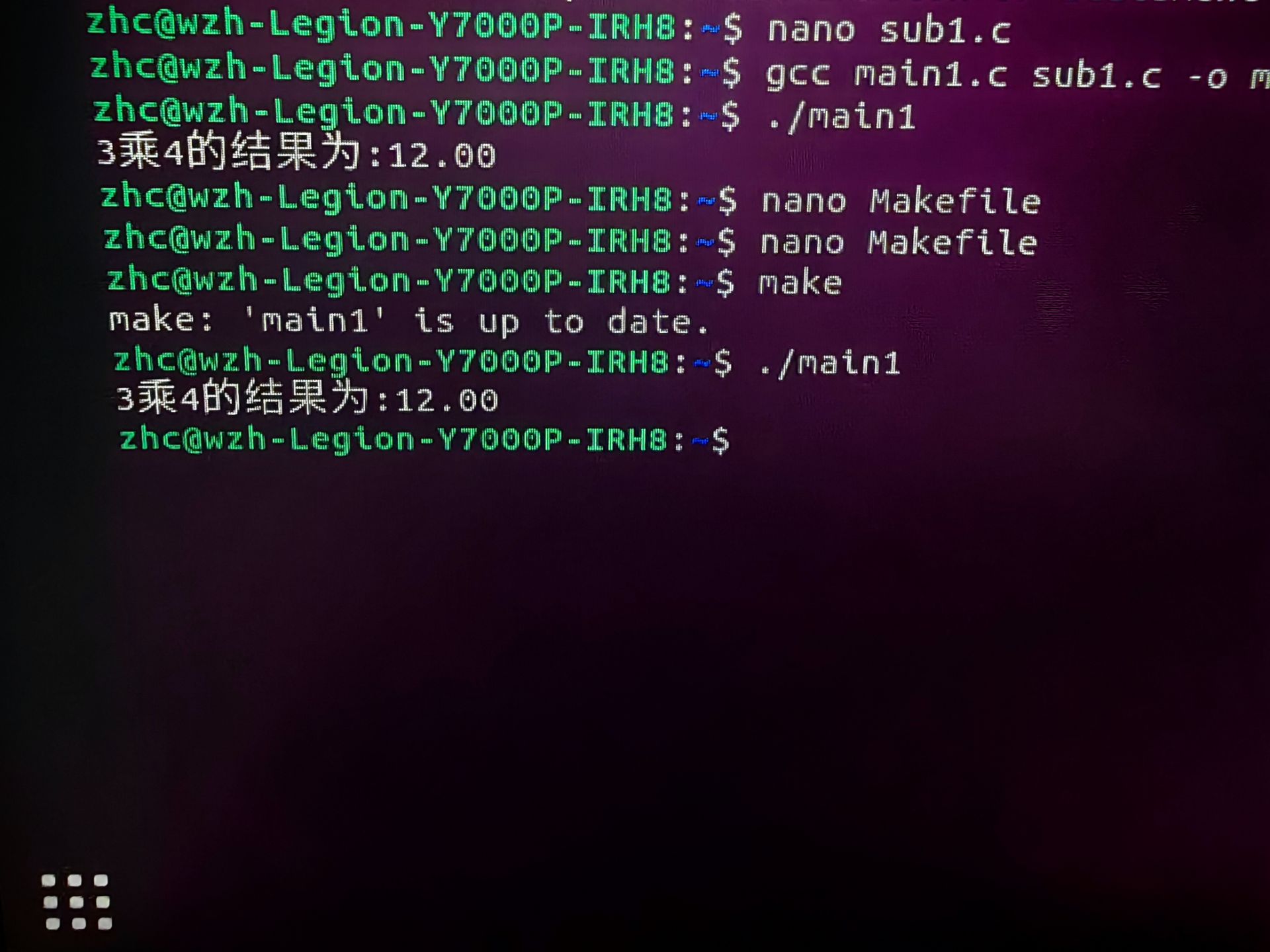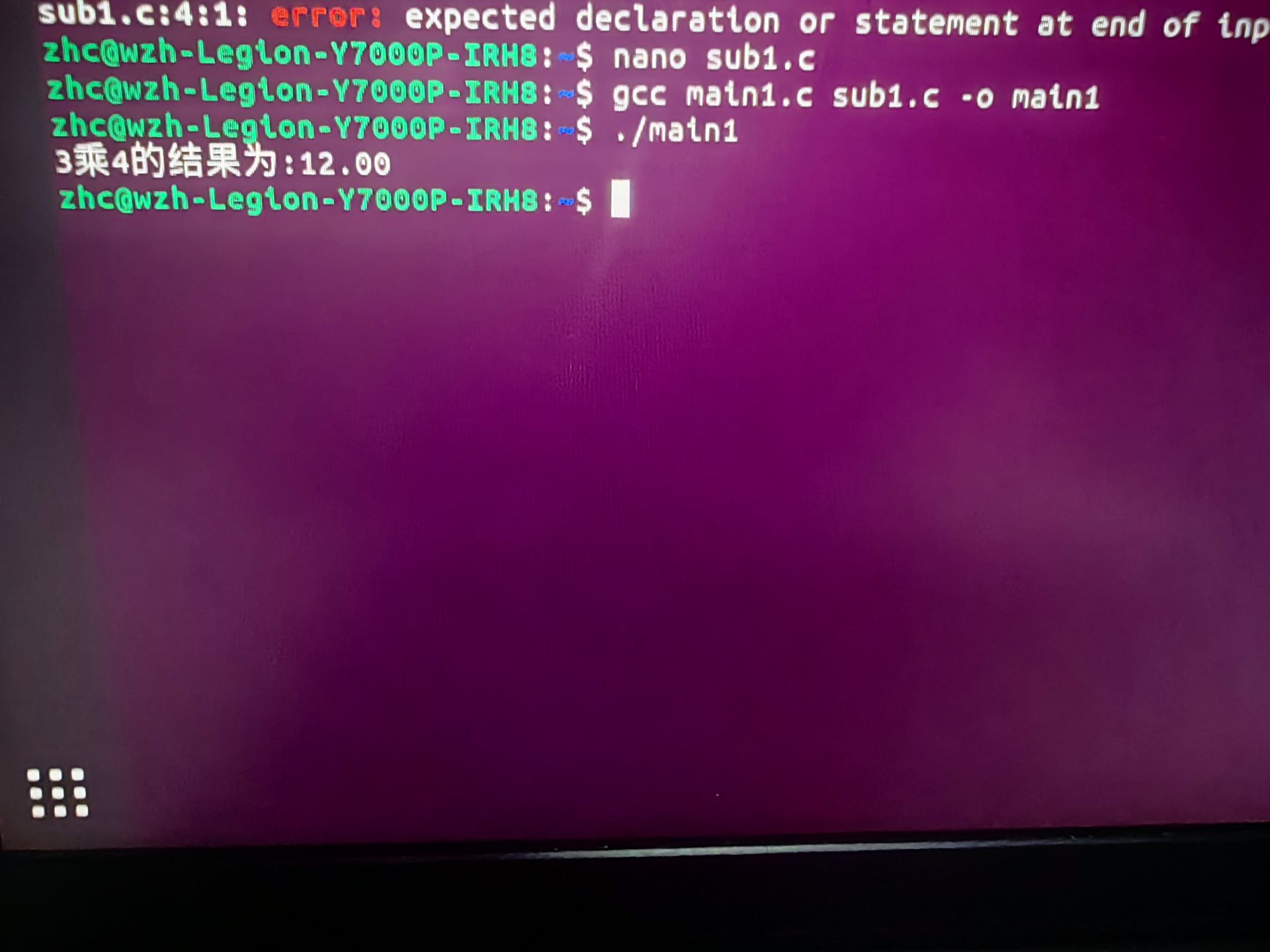 1) 请在ubuntu系统用gcc 命令行方式编译主程序main1.c 并运行;
