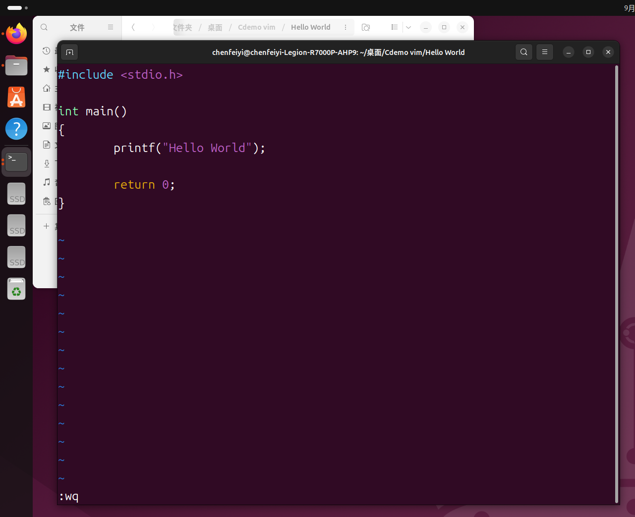 :wq执行保存并退出vim的操作