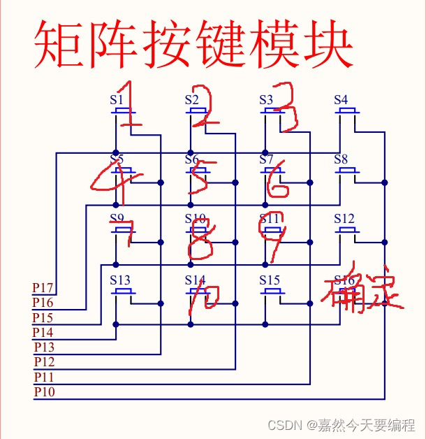 若该列某个按键按下则通过行也为0,则可以通过行列的交叉判断出按键的位置