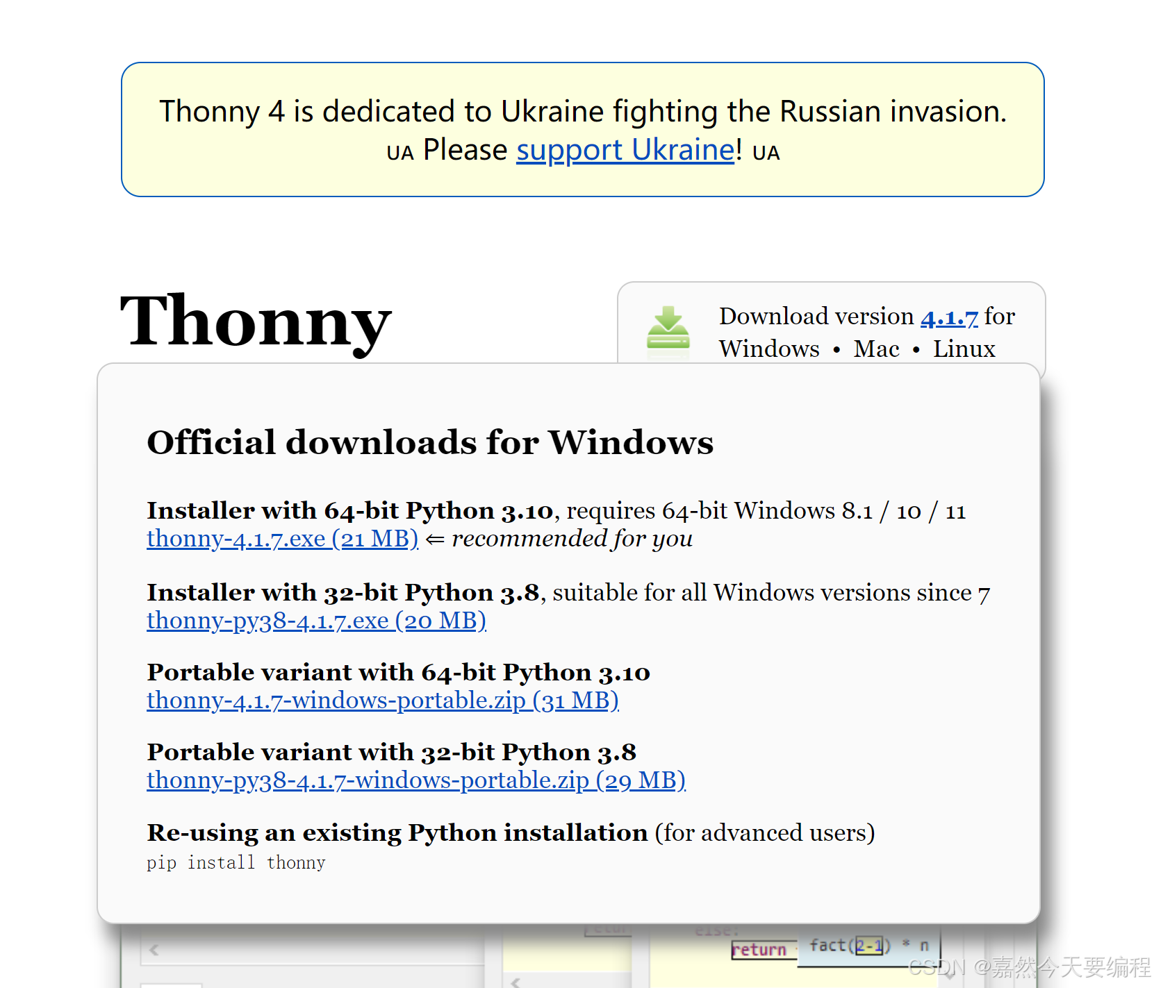 网址链接:Thonny, Python IDE for beginners(根据电脑系统选择合适的版本)