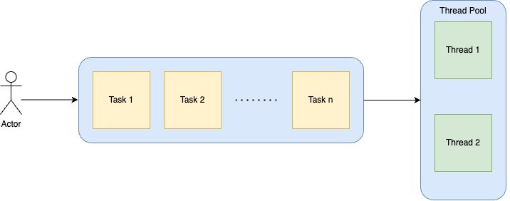 输出(顺序不定):Task 0 on thread ... Task 1 on thread ...