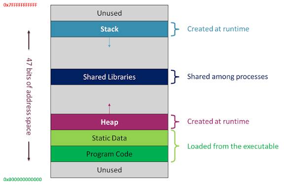 - 地址空间低(32 位系统一般从 0x08048000 开始);