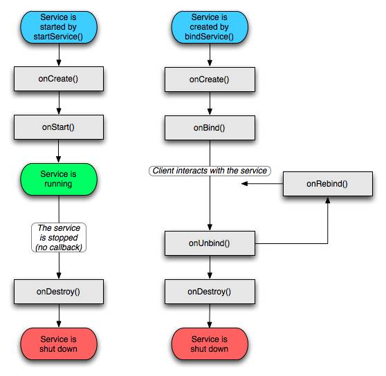 启动 → onCreate () → onStartCommand () → 运行中 → stopService ()/stopSelf () → onDestroy () → 销毁