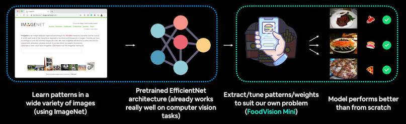 迁移学习是当前 AI 应用的核心技术之一 —— 用在大规模数据集(如 ImageNet)上训练好的模型,微调后应用于小规模数据集的任务(如自己的图像分类任务)。