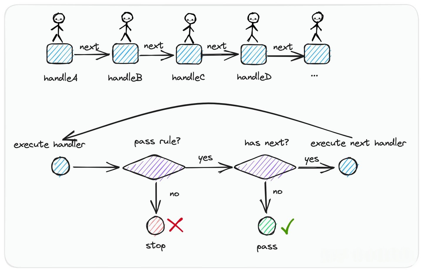 - 可读性:将复杂的流程化逻辑拆分为多个独立的处理者,代码结构更清晰。