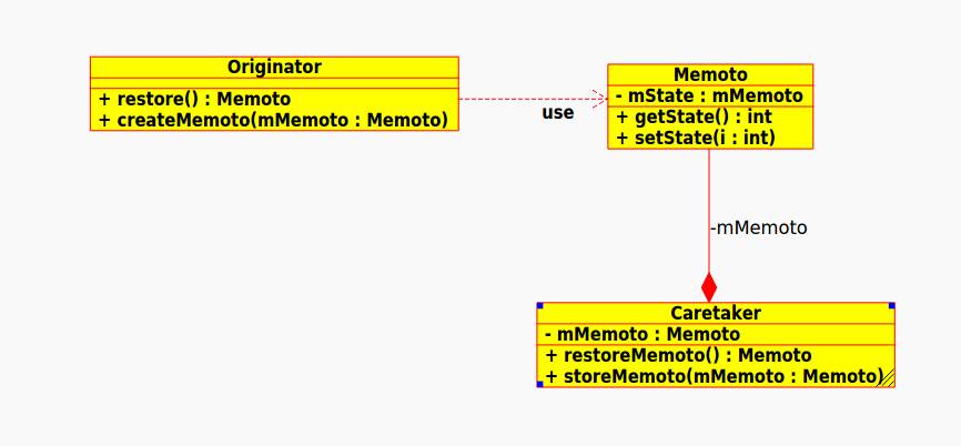 EditorState),发起人持有该类对象,备忘录只存储EditorState的拷贝,新增状态只需修改EditorState类。