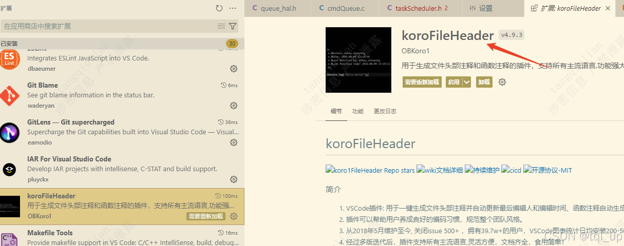 在vscode extensions中搜索并按照koroFileHeader 插件