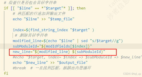 举例,如下代码,是实现在行尾添加 子模块的id。但是测试发现,在子模块id之前总会有一个换行。