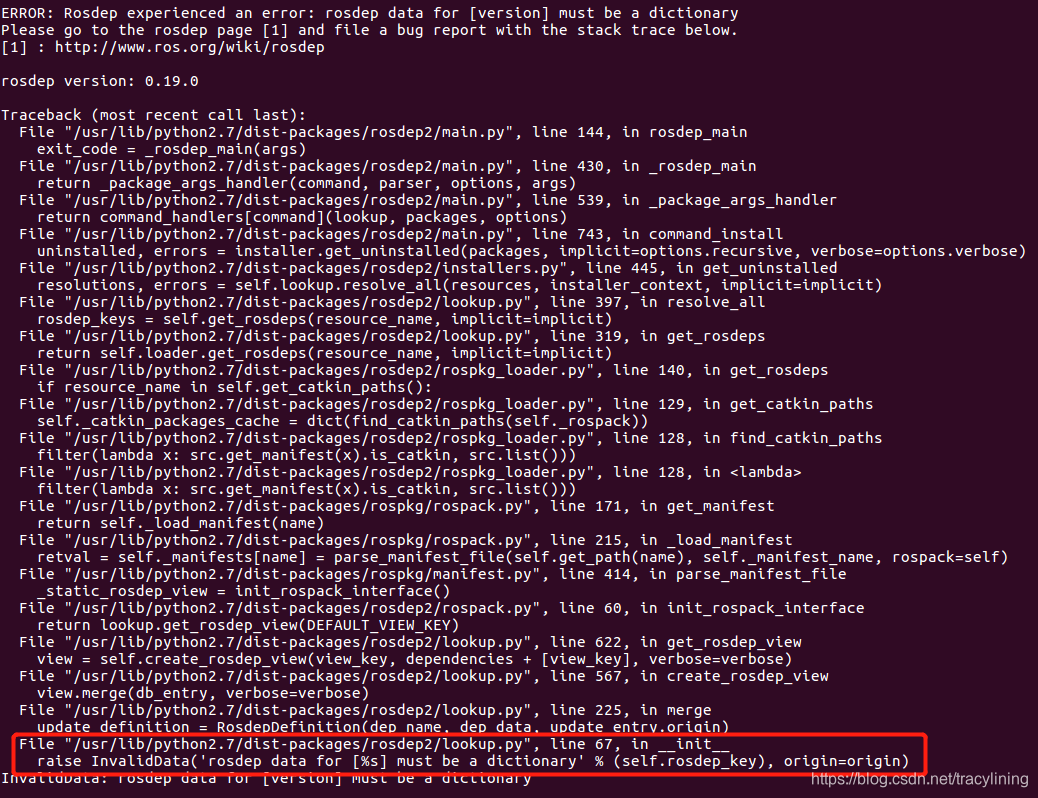 ERROR: Rosdep experienced an error: rosdep data for [version] must be a dictionary