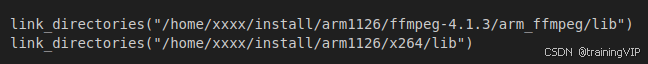 -DFFMPEG_INCLUDE_DIRS=/home/xxxx/install/arm1126/ffmpeg-4.1.3/arm_ffmpeg/include \